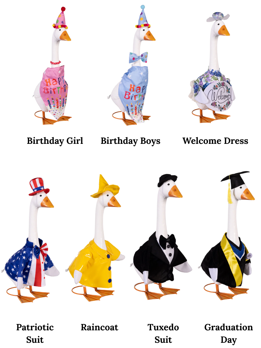 Crafted with rustic details and durable metalwork, this goose adds a cheerful personality to any outdoor décor. Whether dressed for the season or standing solo, it’s a delightful conversation starter. Perfect for year-round display and easy to accessorize with themed outfits. Size: 7.87"W x 20.5"H x 17.7"D