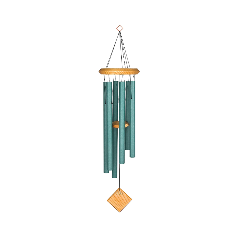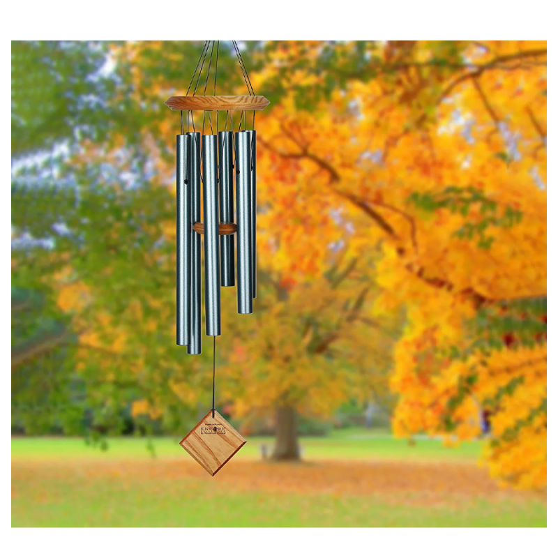 This chime is designed and handcrafted for superior musical performance. It is hand-tuned to a universal, pentatonic (five-note) scale and acts in concert with the wind to create random patterns of wonderful sound. Harmonizes beautifully with all the other Encore Collection chimes.