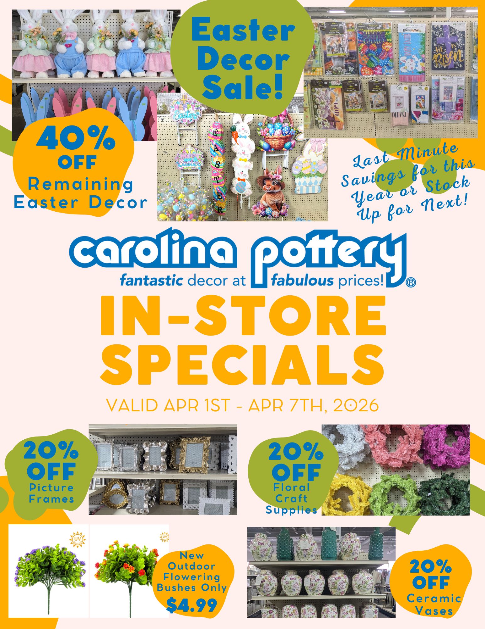 Shop In-Store Deals and Weekly Specials at Carolina Pottery